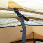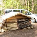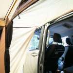 同社のカーサイドシリーズは単独使用できませんでしたが、「カーサイドロッジ」は車両側にもメッシュ付きドアパネルがついていて、ロッジ型テントみたいに単独で使えるようになりました。全閉すればタイヤの間からの隙間風も気になりません。