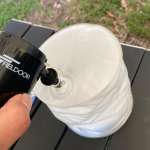 続いて、旧来型バルブにとってかわる勢いで勢力を増している広口バルブ。これは樹脂製の一番広いアタッチメントがフィットします。手を添えなくてもよく、効率よく空気が入っていきました。
