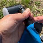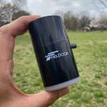 唯一の不満は排気には使えないこと。排気にも使いたい場合は、LEDなしの「USB充電式電動エアーポンプ」(2970円)を選択しましょう。LED付きにくらべると、直径が太くなって重量も190gほど重くなりますが、分厚くて大きなエアマットを驚くほどコンパクトにたためます。