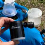 3つのアタッチメントを装着して、エアマットと空気を入れるLEDランタンをふくらませてみました。