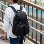 普段使っているのは、背負い心地に定評のあるアウトドアブランドのバックパックなんですが、「ポーター センシズ バックパック」は同じ荷物を入れても軽く背負える感じがしました。チェストストラップやウエストハーネスがないことを感じさせない安定感は、ちょっと他にはない快適さです。αGELという機能性素材をバッグのハーネスに採用するところに、実用性を伴ったポーターらしい革新さを感じます。