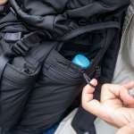 一番の特徴はなんといっても両側サイドポケットの“クイックプル”。紐に指を引っ掛けて引っ張るだけでポケットを開けられます。この“クイックプル”、電車内で前抱えしている時にすごくありがたさを感じました。