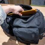また、個人的に重宝したのがサイドファスナーです。フラップを開けることなくメイン収納部に直接アクセスできるので、スムーズにPCの出し入れができるのはうれしいポイント。PCスペースは上からでも横からでも出し入れできるようになっています。