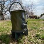 「2-in-1 Water Carrier & Bucket」はなんとスタンド付き。収納袋に入れて、なんならほかのキャンプギアといっしょにバックパックに入れて持ち運べます。