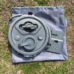 「2-in-1 Water Carrier & Bucket」本体とフタや蛇口、スタンドまでついていて、これらを全部収納袋に入れて持ち運びます。収納袋は比較的ゆとりがあるので、キャンプギアにありがちな“一度入れたら元に戻せない”なんてことはありません。