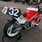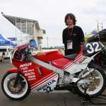 登場当時のスタイルを忠実に再現していて、レース中も注目を集めていたのがゼッケン32のNSR250R。オーナーであるモトハウスネモトの根本正幸さんは、発売当時に乗っていた1987年式NSR(MC16)が好きで、このスタイルのままレースに出続け、今回でTOTは12回目になるとのこと。「ライダーも“このバイクだから”と乗ってくれています。88とか89ではなく、このスタイルで速いのがいいと思っている」とのことで、よく流用される90年式以降のガルアームも使っていません。