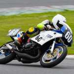 ブルーの発色が美しい86年式のTZR250(1KT)でレースを楽しんでいるのが、ゼッケン60の加藤康治さん。このマシン、普段はサーキット走行だけでなく街乗りやツーリングなどにも使用しているとのことです。