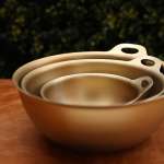 ▲「小伝具 アルミボウル」10cmは220ml。無洗米1合に対する水の量とほぼ同じ