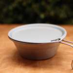 「小伝具 アルミボウル」はサッと調理してそのままサーブすることも、焚き火にかけて温め直しすることもできます。このとき、フタがあると灰が入らなくていいのにな…と思うでしょう。