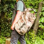 肩掛けで持てば、バックパックを背負った状態でも運搬可能!