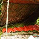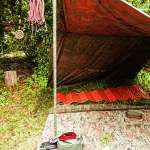イタリア軍幕(175×175cm正方形)を2枚連結させてティピー型のように張っているのですが、このような形の幕で入口部分が狭い形状の場合、入口だけ塞げば、圧迫感なく、虫の防御はある程度可能です。