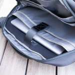 メインスペースには16インチまで収納できるパッド入りラップトップポケットを配備。起毛素材とクッション性が効いたPCに優しい構造です。また、手前のスリーブは書類やタブレットを入れたりするのにぴったり。