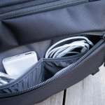 立体的に設計されたフロントポケットは、ヘッドホンなど厚みのあるものも収納可能。「Travel Sling 2 Black」という名前だけにカメラなど旅先で持ち歩きたいものを入れておくポケットとしてもおすすめです。