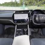 「あえてハンドルって言い方のほうがしっくりきますよね」。RZの開発を総指揮した、レクサスインターナショナルの渡辺剛主査に案内してもらって、乗り込んだ室内。