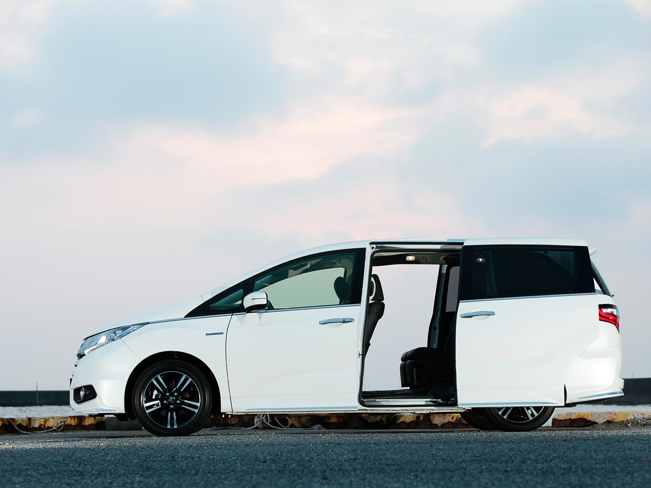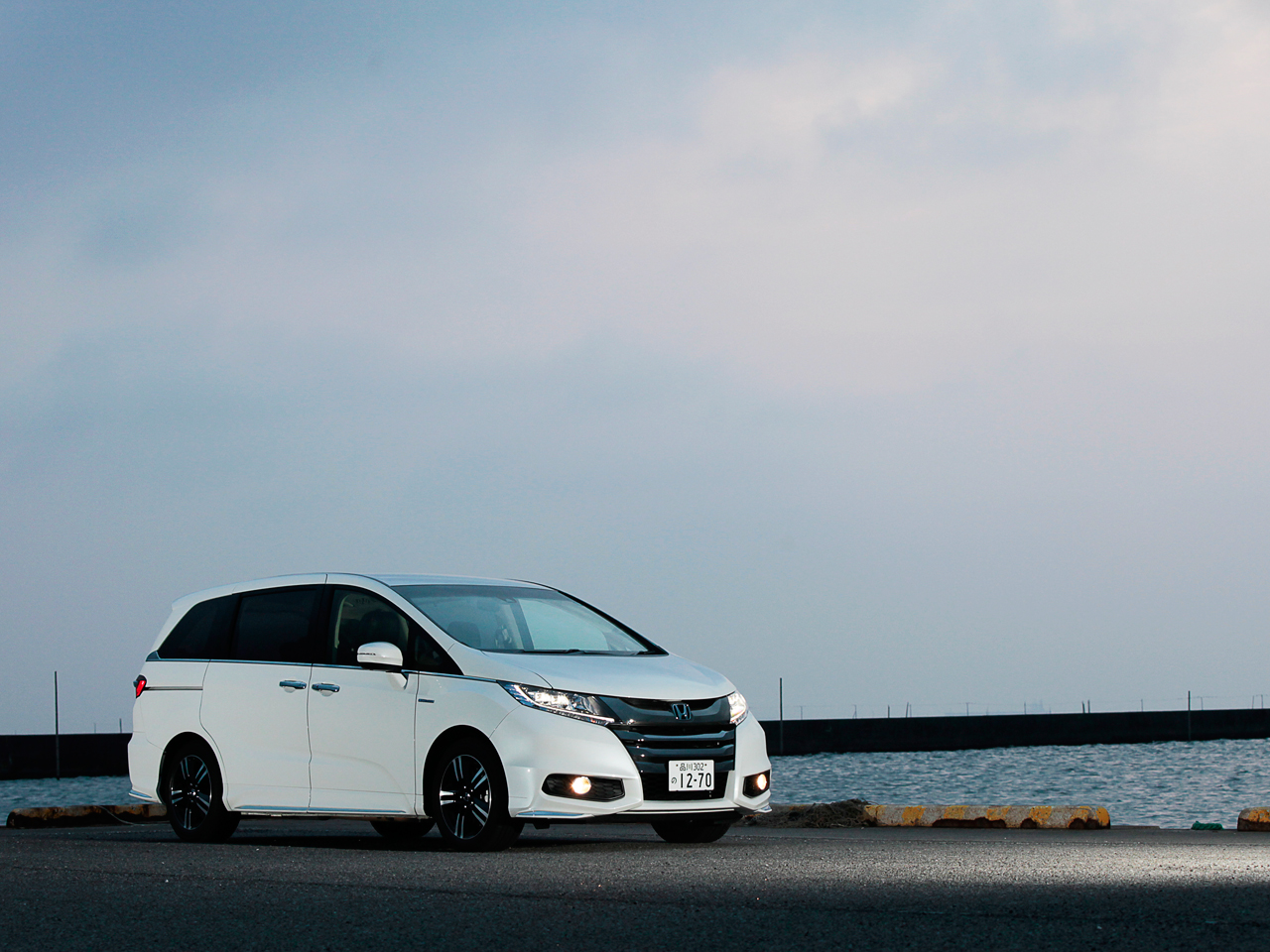 今回ドライブしたミニバンは、ホンダの「オデッセイ ハイブリッド アブソルート」。グレードは「Honda SENSING EX パッケージ」で、お値段400万円也。ご存知のように、5世代目となる現行のオデッセイ/オデッセイ アブソルートは、フロアの地上高を下げた“超低床プラットフォーム”がジマン。2013年のフルモデルチェンジで、それまでのヒンジ式4ドアのスタイルを捨て、リアに左右スライドドアを採用しました。