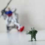 遠近の差を使ってスケール感を合わせようと撮影を試みましたが、ストライクガンダムの方が大きすぎる? というか、ゾノの方が小さすぎて、うまくいかず…(苦笑)。