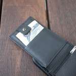 気になるウォレット機能ですが、スナップボタンをパカッと開くと縦開きのお札スペースがお目見え。お札を三つ折りにした状態でぴったりのサイズ感で、スナップボタンはお札のストッパーにもなっています。