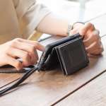アクセサリーケースは全部で3種類。写真左は、今回使用した現金とカードが収納できるウォレットケース。写真中央は、“現金は必要ない”という人におすすめのカードケース。写真右は、カードに加えてAirPodsなどの小物も持ち運べるマイクロバッグです。なお、スマホケースは単体でも購入可能です。