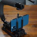 そして、サブカメラとして、手持ちの「iPhone 12 Pro」も使えるようにしてあります。手ブレ防止用にローアングル撮影向けハンドルグリップも活用しています。