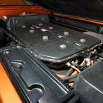 目に飛び込んでくるのは、電流を制御するインバーターと、それに組み合わせて冷却まで制御するハイパワーディストリビューターモジュール。オレンジ色のぶっといケーブルが、いかにもパワフル、という印象を与えます。