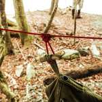 巻き結び、トラッカーズ・ヒッチ、プルージック・ノットの3つのロープワークだけで、広くて、荷物が減り、簡単にパップ型テントが張れます。しかも、ポールを立てるよりも位置をずらすのも簡単ですし、強風にも強いのが特徴です。