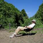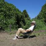 シートの幅の広さと腰入れの深さ、背もたれの角度が、のんびり空を見たり、ボーッとするのに、ちょうどいいんですよね。身長とのバランスも関係あるのかもしれません。背が低く、すっぽりと収まる感覚なので、座り心地の良さを感じるのでしょう。