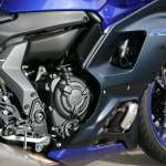 見た目のスタイルは「YZF-R」シリーズの血統を強く感じさせるもの。尖った印象のカウルは空力特性も良く、スリムな車体も相まってかなり走りそうな印象です。シート高は835mmと低くはありませんが、車体が細身でシートの横幅も絞り込まれているので足付き性は悪くありません。