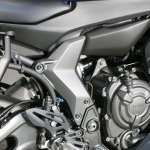 ベースとなったのは同社のストリートスポーツ「MT-07」。フルカウルをまとっただけでなく、フロントには倒立タイプのフォークを装備し、セパレートハンドルとすることで前傾のライディングポジションとなっています。それに伴い、車体のディメンションも見直され、スイングアームのピボット部を両側から金属製のブレースで補強することで剛性もアップ。「MT-07」のエンジンとフレームを使いながら、全く別のマシンに仕上がっています。