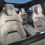 リアシートはフロントと同じフルバケットタイプ。からだにしっくりなじみます。前後に200mmスライド可能なので、レッグスペースも充分。形状は、しっかり乗員をホールドして、スポーツカーに乗っている感覚が重要です、とマンツォーニ氏。「5シーター(ベンチシート)はありえません」とのきっぱり。