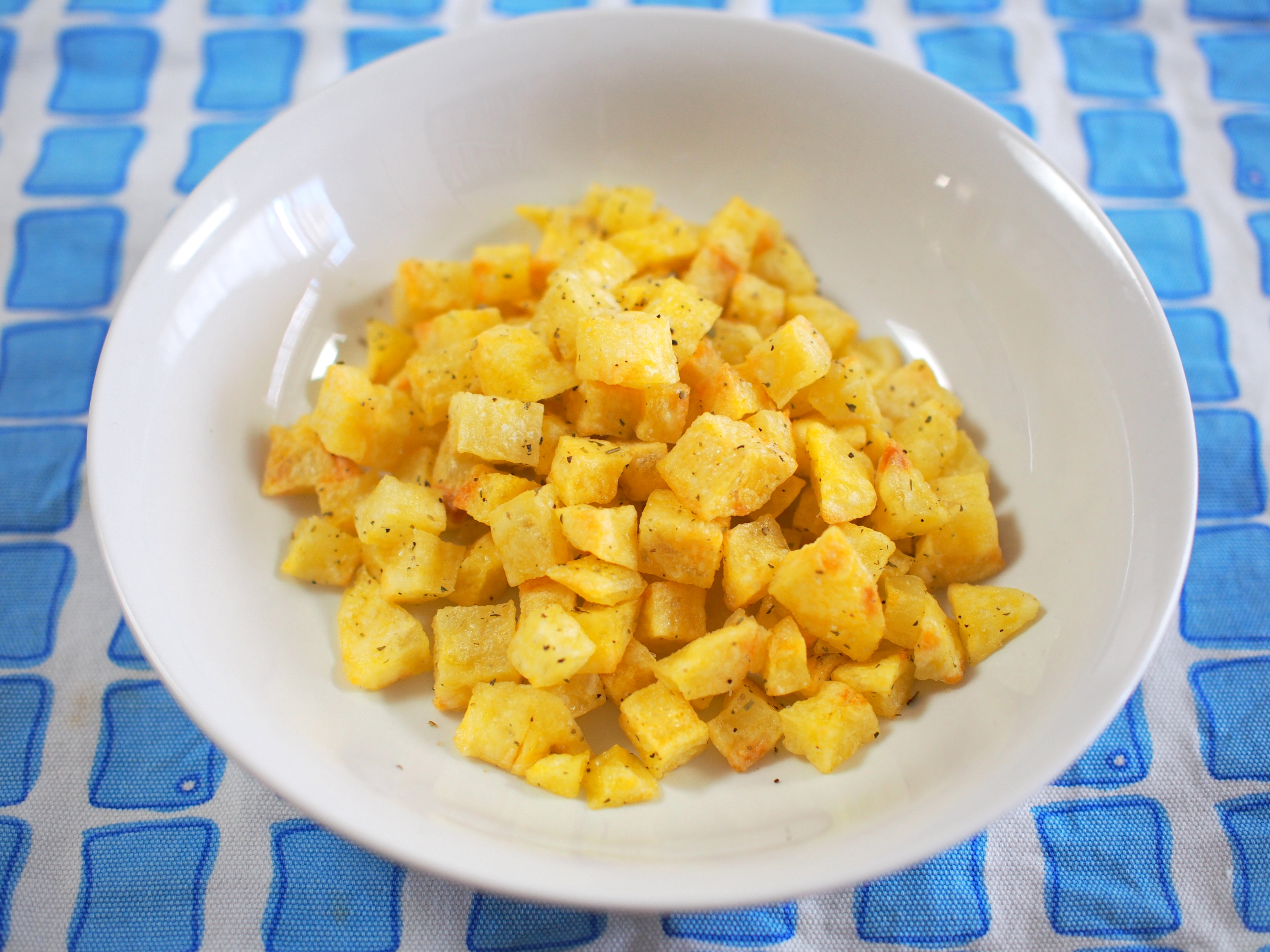 でも、買ったほうが早いんじゃ……。もちろん、筆者もそう思いました。しかし、いろんな味付けが試せることこそが、自家製ならではの魅力! ブラックペッパーを効かせればビールに合いそうですし、カレー粉やコンソメ、ガーリック、砂糖など、アレンジは自由自在。”甘い×しょっぱい”の魔法の味付けも開発できそうです。お気に入りの味付けを見つけて、思う存分キューブポテトを堪能してみませんか?