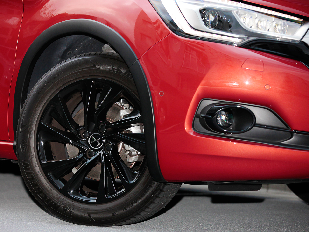 DS4 クロスバックは、DS4の車高を30mm高め、ルーフレールを装着。そして、ホイールアーチに黒い樹脂製のモールをプラスしてワイルドに装ったモデルです。前後バンパーの中央下部をブラックアウトし、視覚的にも車高が高く感じるよう工夫。黒く塗られたホイールも、同じ効果を発揮しています。