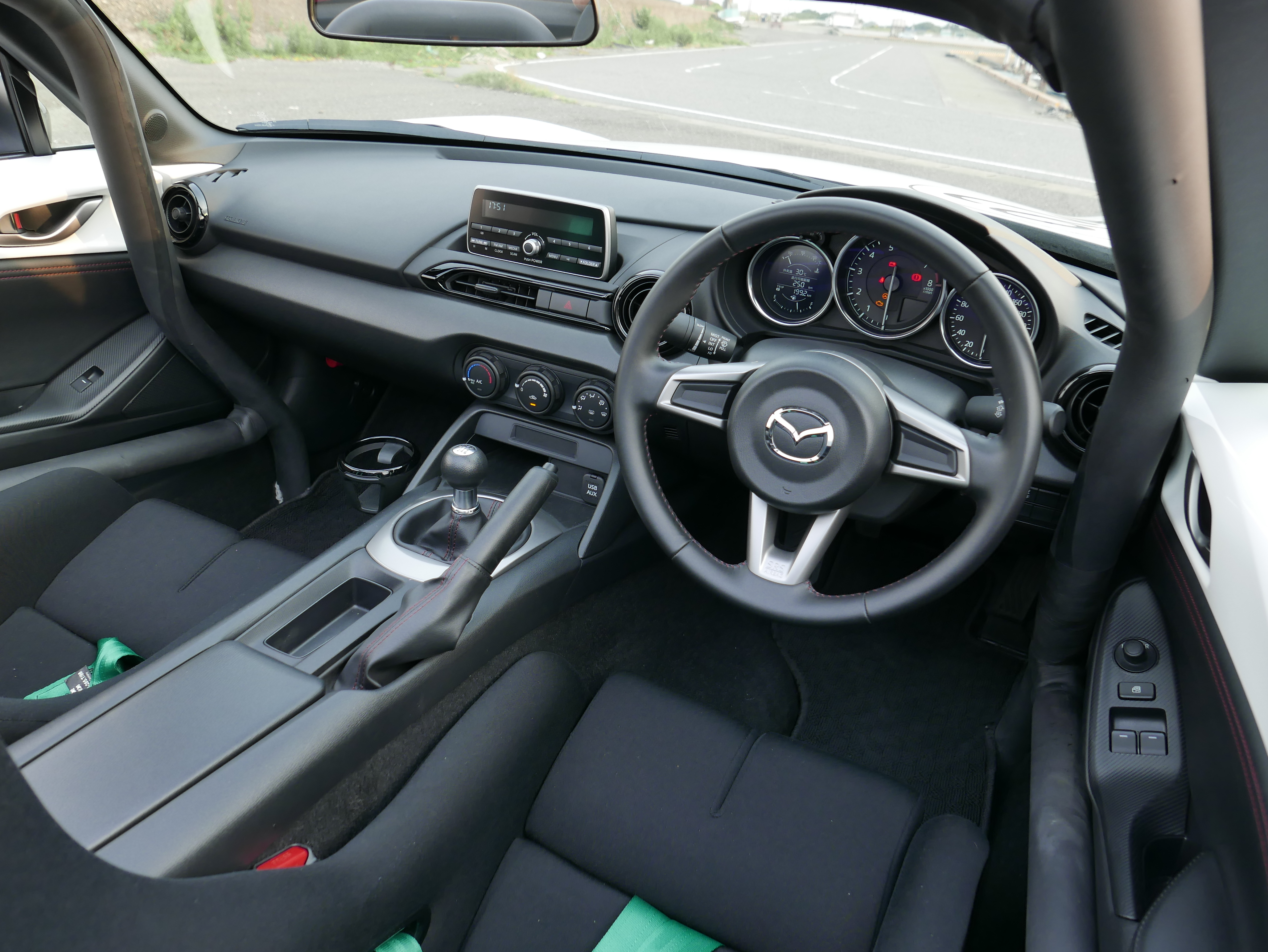 固めたアシに下げられた車高。そしてスポーツタイヤ…。ガチガチなんじゃないの? と一抹の不安。ところが実際は、リニアなロールやピッチングがナチュラルに感じられるしなやかさがあります。ステアリングホイールを切るとフロントがロールしてからリアが付いていく感じ。ロードスターの持ち味が活きています。ステアリング切ったらパキッとリアが着いてくる反応が好きなドライバーも多いでしょうが、クルマの挙動がいろんな感覚を通じて得られやすい=初心者にも優しい、ロードスターの美点がNR-Aには継承されています。