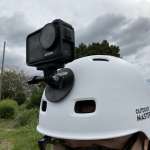 お次は「DJI Osmo Action 3」の粘着式フラットベースを利用してヘルメットに取り付け。小さな丘を上り下りして撮影していても画面はほぼ安定をキープ。補正OFFの状態でも撮影してみて、頭振った状態を見比べましたが、補正が強力なことがわかります。