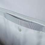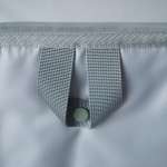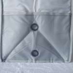 左右表裏の4面上部中央は、ポリ袋を固定できるスナップボタン付き。本体は水を吸収しない素材ではないため、汗をかいた日の服や濡れたタオルをそのまま入れたくない場合、内部にポリ袋を設置すると安心です。4つのボタンでしっかりと固定されるので、使用中に外れる心配はありません。