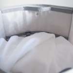 さて、コインランドリーに行く前に、洗濯物を詰めます。せっかくバッグが大容量なので、まずは洗濯機で洗いにくい、かさばるものにしようと思い、1年間しまいっぱなしだった冬用ブランケット(140×200cm)と新しいバスタオル4枚(Lサイズ/70×140cm、Mサイズ/33×120cm)を持っていくことに決定。
