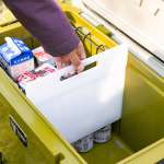 大きめのハードクーラーなら、食べきれなかった鍋料理を、鍋底が冷えてからそのままクーラーボックスで保管するなんてことも可能。「HYAD クーラーボックス 47R」の仕切り板は、食品と鍋をきっちり分けられるのが便利です。