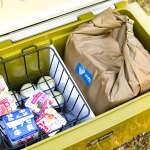 肉や魚など、できるだけ温度変化を抑えたい食品は、保冷材とともに「クーラーパック 18」にいれてから「HYAD クーラーボックス 47R」へ。