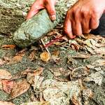 ちなみに、先ほど、位置を探る時は地面に這うようにとお伝えしておりますが、この上の写真は地面よりロープが少し高い位置にあるのは、上記説明をわかりやすくするために撮った写真なのでご了承ください。本来はなるべく、ロープは地面にスレスレにします。