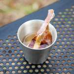 キャンプ撮影は10月はじめ、北軽井沢のキャンプ場で行いました。買い出しの際に、ふと「りんごの季節だし、このあたりは産地に近いし」と手にしたりんごジャム(レーズン入り)と燗酒のコンビです。