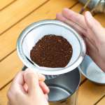 アウトドア用でシャワー構造を採用しているドリッパーといえばコールマン「パルテノンコーヒードリッパー」がありますが、こちらはマグカップに載せるタイプ。ソロキャンプにはいいのですが、シェラカップなど広口カップには対応していませんし、温め直すには改めて鍋に移す必要があります。