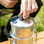 一方、「アウトドア ニューカントリー102」は2〜4人分のコーヒーをまとめて淹れられるし、温め直しも簡単です。ファミキャンやグルキャンではまとめて淹れて同じタイミングでサーブできるんですね。