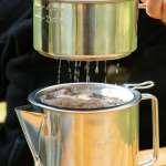 ドリッパーの上にシャワーポットを置き、一気に湯を注ぎます。湯の温度はとくに計っていませんし湯の量を計算しているわけではありません。