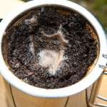 約2分30秒後にふたをあけて抽出完了。縁までいっぱい豆が膨らんだようです