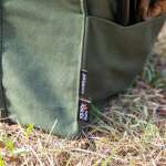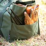「薪ケース」にはなかった両側の外ポケットは、浅め(14.5×H16cm)とホック付き(29×H24cm)の2タイプ。グローブや鉈、トング、火ふき棒などをいっしょに収納して持ち運べるようになりました。これはうれしい!