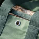 ちなみにグロメットは長辺のみになりました。「薪ケース」は正方形なので4辺に備えていましたが、「焚き火バッグ」は薪を横置きにする方向が決まっているので、これで十分なんです。