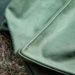 そしてtakibi hampは蝋引きの防水帆布に比べてしなやか。くたっとして頼りなく感じますが、各辺の縁を縫っており、これが芯となって耐久性アップ+薪が少なくても型崩れしづらくなっています。