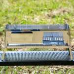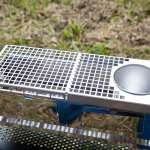「B-6君専用 ステンレスメッシュグリル」を2枚セットすれば、サンマ2尾を同時に焼くことだってできますよ。写真は熱燗用のカップ部分があるためグリルの幅が短くなっていますが、1尾ならこのとおり、斜めに置けばすっぽり収まるんですね。