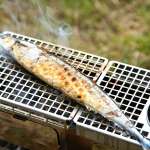 木炭でたっぷり熾きを作ったら、「B-6君専用 ステンレスメッシュ カン(燗)グリル」と「B-6君専用 ステンレスメッシュグリル」をセット。グリル部分をよく熱してから軽く塩をふったサンマを載せて黄金色になるまで焼きます。