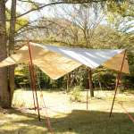 屋根が広く、ポールに干渉されにくいのでテントと組み合わせやすい張り方でもあります。