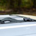 クルマ側にはもうひとつ、短いウェビングが装備されています。ルーフキャリアにこのウェビングを巻き付けるとタープの横揺れを低減できそう。